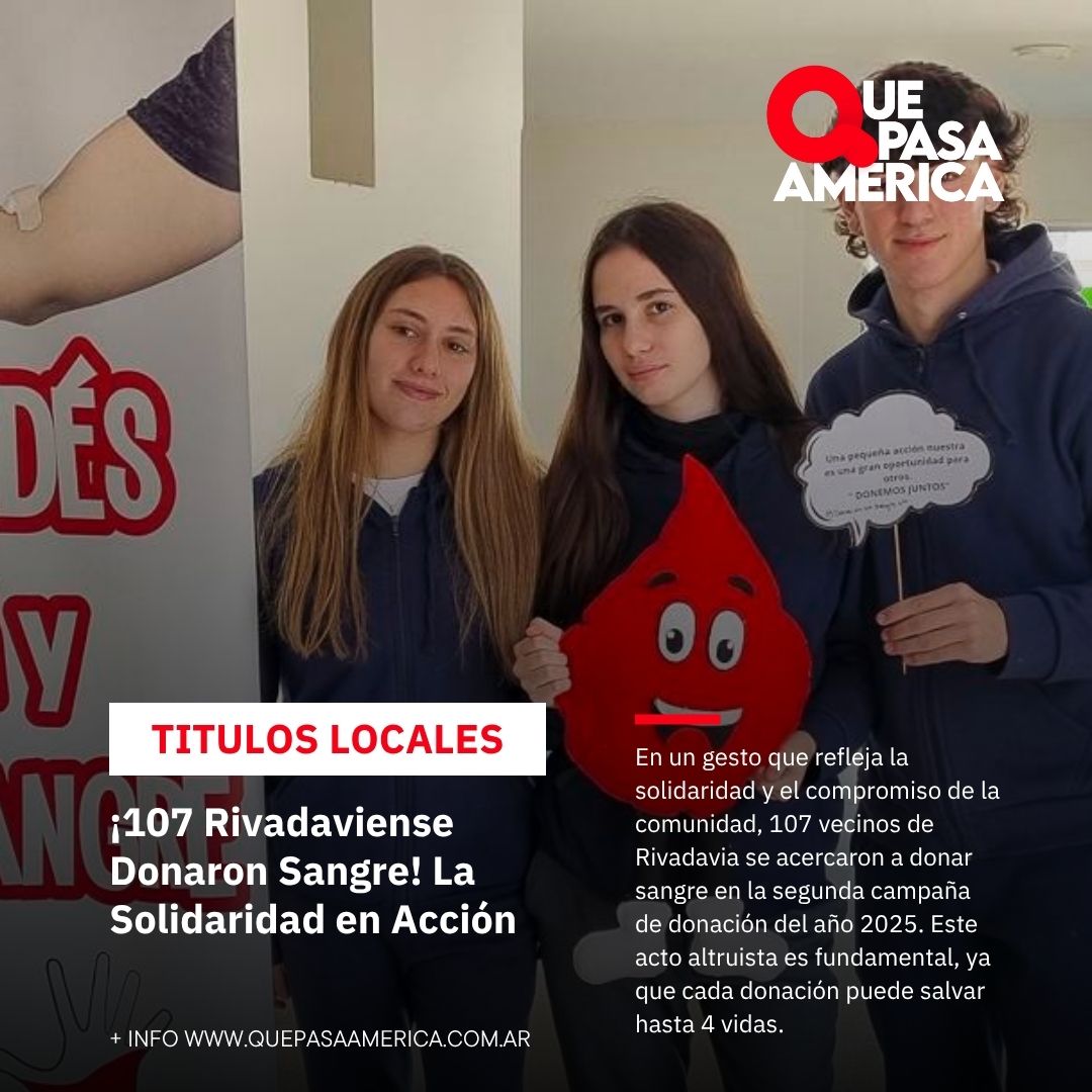 Los 107 rivadaviense que donaron sangre en esta oportunidad son un ejemplo a seguir. Su acción demuestra que la solidaridad y la empatía pueden hacer una gran diferencia en la vida de las personas.