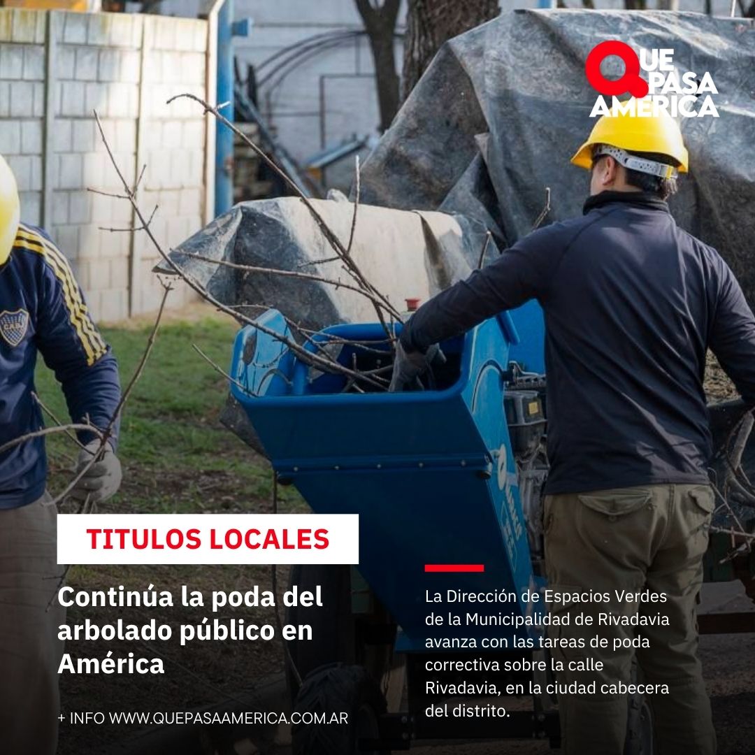 La Dirección de Espacios Verdes de la Municipalidad de Rivadavia avanza con las tareas de poda correctiva sobre la calle Rivadavia, en la ciudad cabecera del distrito.