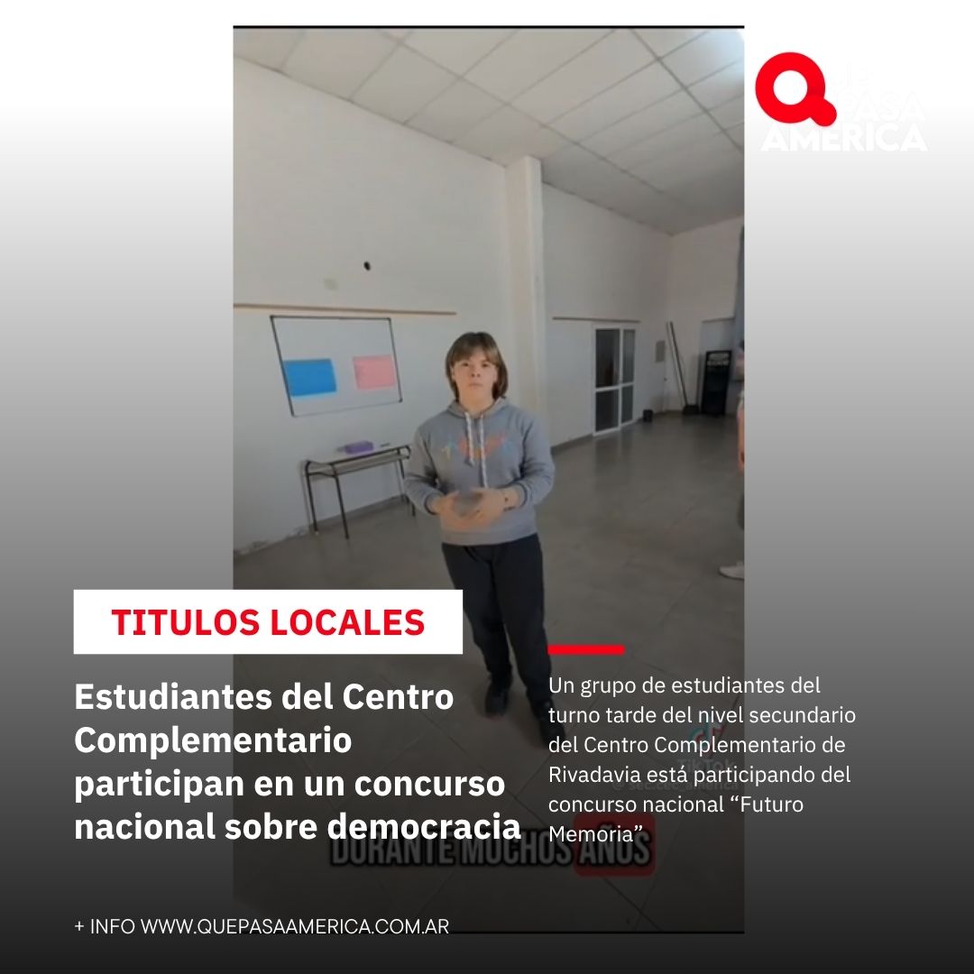 Un grupo de estudiantes del turno tarde del nivel secundario del Centro Complementario de Rivadavia está participando del concurso nacional “Futuro Memoria”, una propuesta que invita a jóvenes de todo el país a reflexionar sobre la democracia a través de producciones audiovisuales en formato TikTok.
