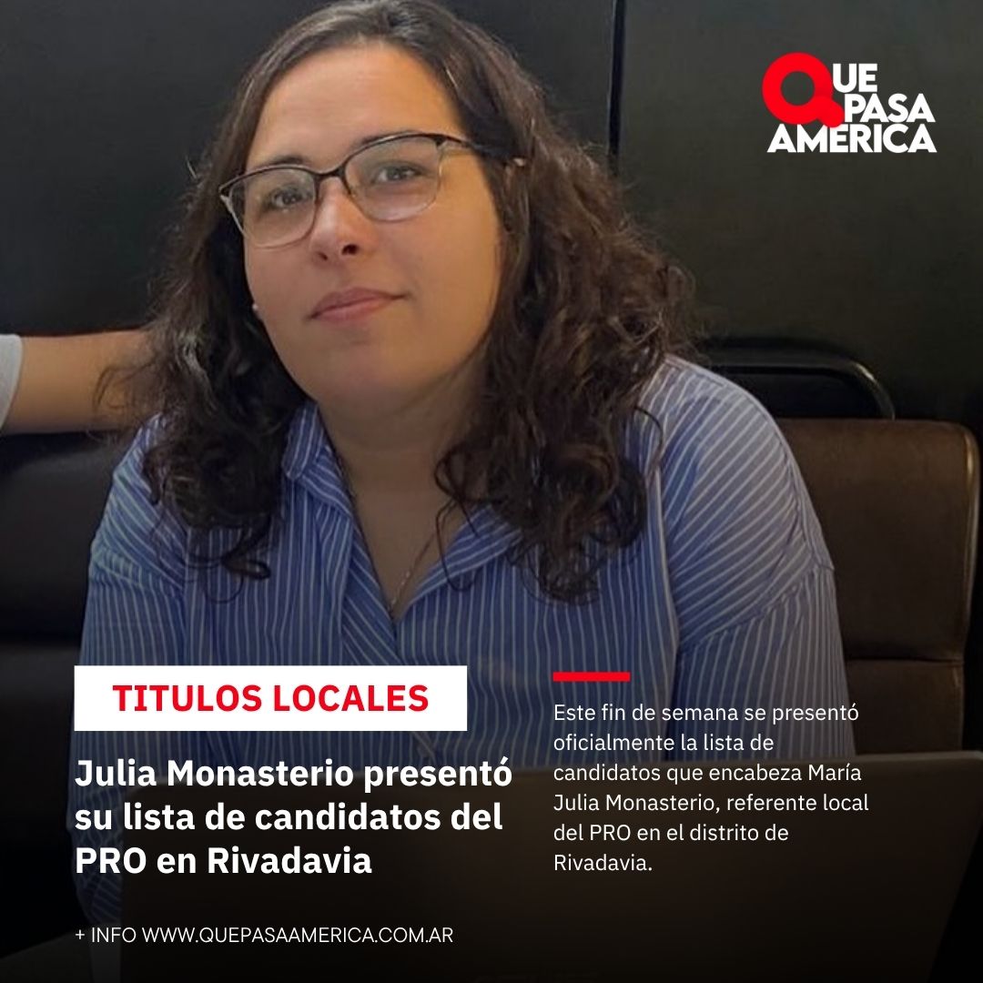 Este fin de semana se presentó oficialmente la lista de candidatos que encabeza María Julia Monasterio, referente local del PRO en el distrito de Rivadavia. Acompañada por vecinos y referentes del espacio, Monasterio anunció su postulación como candidata a concejal con un mensaje de compromiso, diálogo y trabajo en equipo.