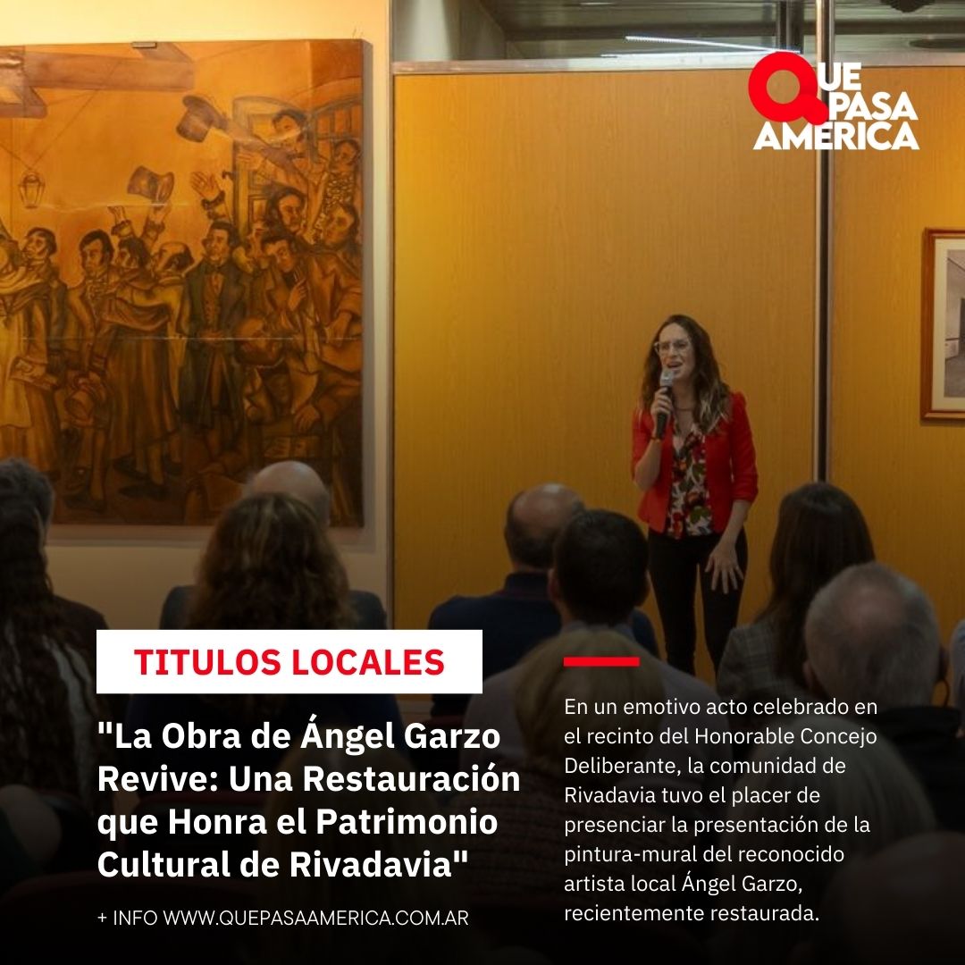 En un emotivo acto celebrado en el recinto del Honorable Concejo Deliberante, la comunidad de Rivadavia tuvo el placer de presenciar la presentación de la pintura-mural del reconocido artista local Ángel Garzo, recientemente restaurada. Esta obra, que forma parte invaluable del patrimonio cultural del distrito, ha sido puesta en valor gracias al minucioso trabajo de restauración llevado a cabo por la talentosa artista visual Salomé Hernaiz, de Trenque Lauquen.