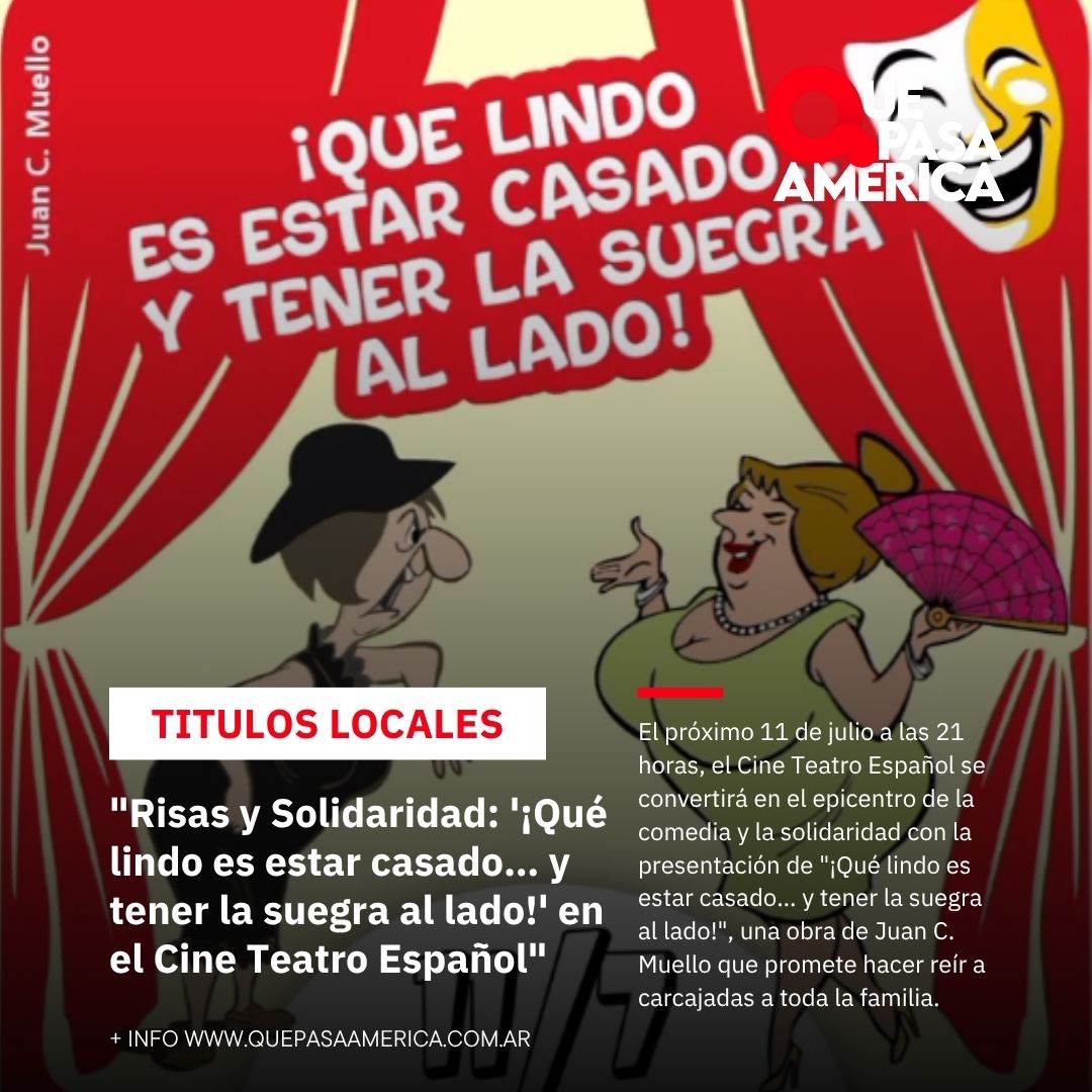 El próximo 11 de julio a las 21 horas, el Cine Teatro Español se convertirá en el epicentro de la comedia y la solidaridad con la presentación de «¡Qué lindo es estar casado… y tener la suegra al lado!», una obra de Juan C. Muello que promete hacer reír a carcajadas a toda la familia.