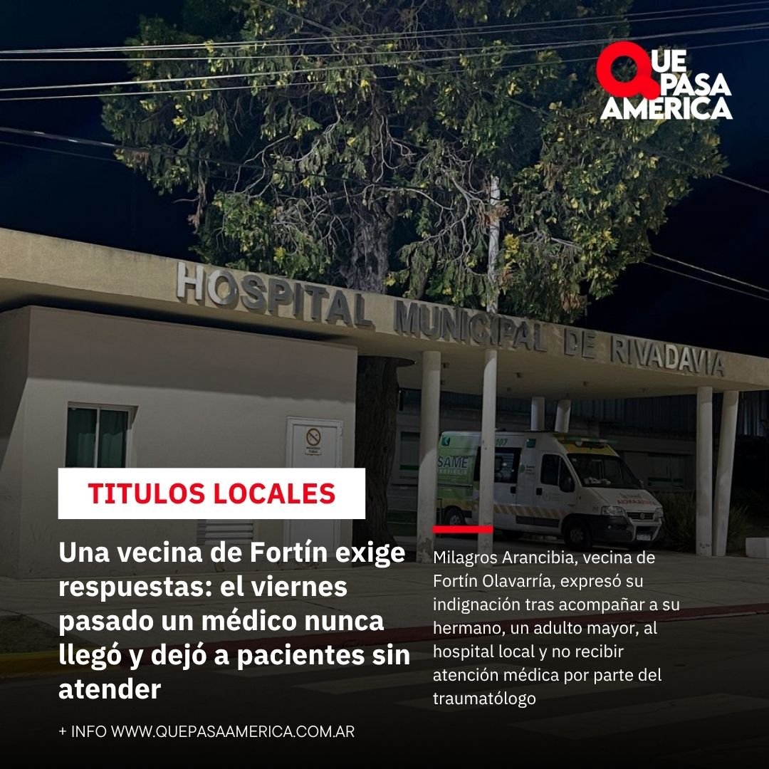 Milagros Arancibia, vecina de Fortín Olavarría, expresó su indignación tras acompañar a su hermano, un adulto mayor, al hospital local y no recibir atención médica por parte del traumatólogo. Según relató en un testimonio enviado a este medio, la situación fue “bochornosa” y afectó a numerosas personas, muchas de ellas de edad avanzada y con dolor, que esperaron durante horas sin recibir respuesta.