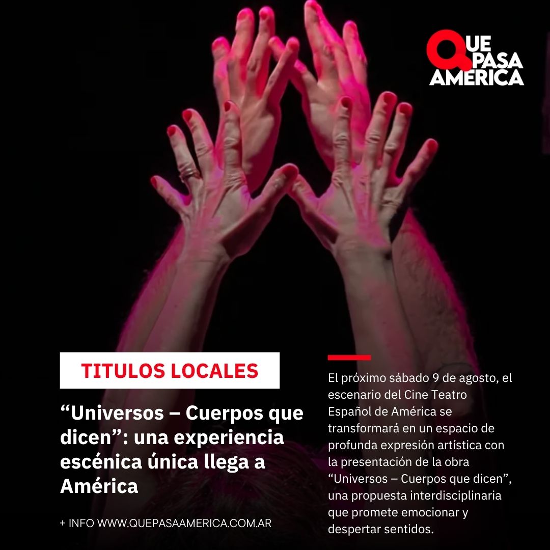 El próximo sábado 9 de agosto, el escenario del Cine Teatro Español de América se transformará en un espacio de profunda expresión artística con la presentación de la obra “Universos – Cuerpos que dicen”, una propuesta interdisciplinaria que promete emocionar y despertar sentidos.