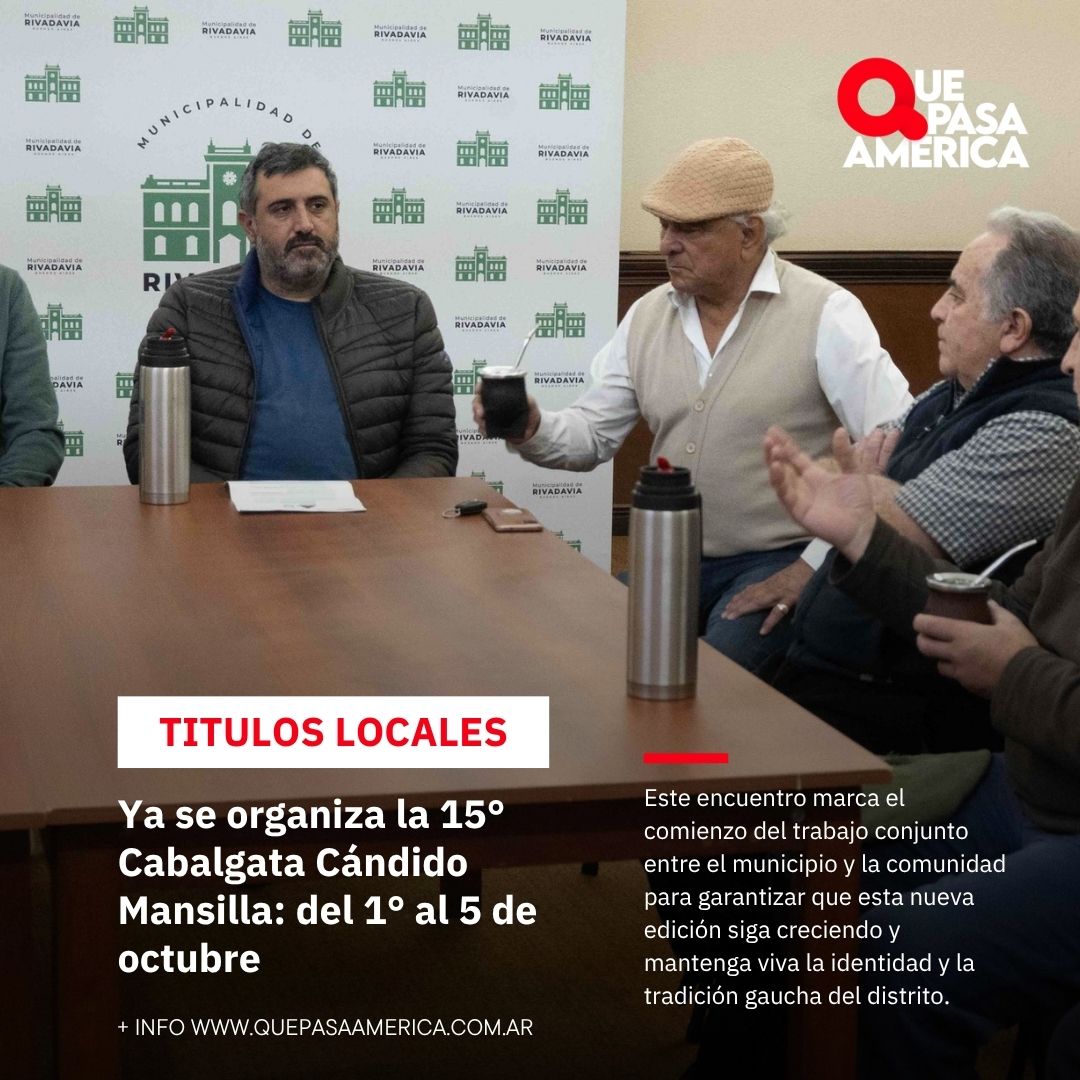 La tradicional Cabalgata Cándido Mansilla, uno de los eventos más esperados del calendario cultural de Rivadavia, ya comenzó su cuenta regresiva. El intendente Juanci Martínez, junto a su equipo de Gobierno, mantuvo una reunión con vecinos y vecinas para dar el puntapié inicial a la organización de la 15° edición, que se llevará a cabo entre el 1° y el 5 de octubre.