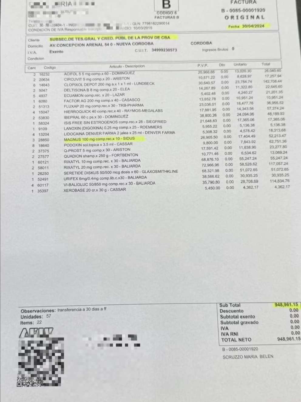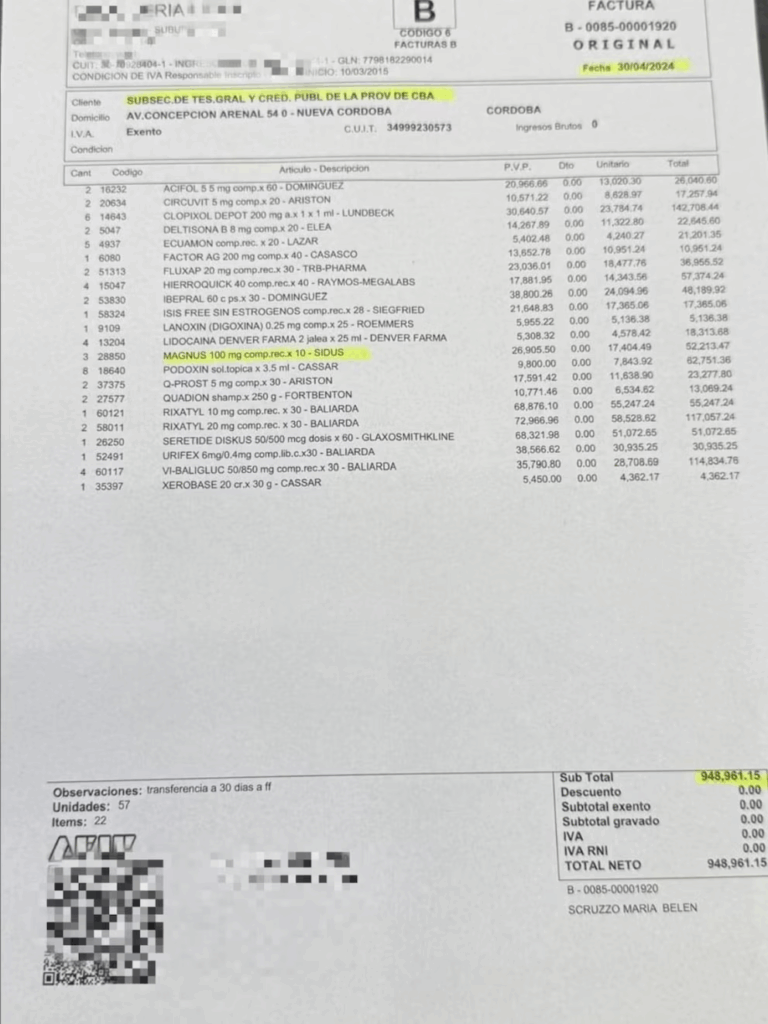 Después de que el vocal hiciera pública la factura correspondiente al mes de abril de 2024 en su cuenta en la red social X, se constató que la institución había adquirido medicamentos y productos como Sildenafil —conocido por la marca Viagra—, junto con otros productos de uso personal.