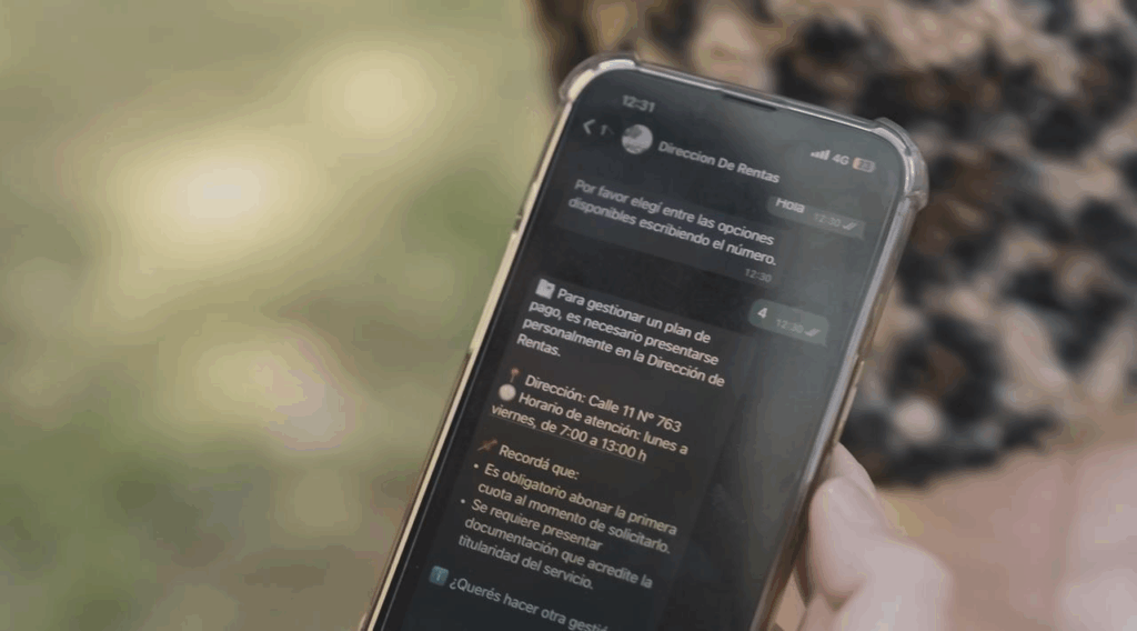 El sistema funciona las 24 horas del día con respuestas automáticas a las consultas más frecuentes. En caso de requerir atención personalizada, la conversación es derivada a un agente municipal que atiende en el horario administrativo, de lunes a viernes de 7:00 a 13:00. Por el momento, el servicio permite gestionar trámites de la Dirección de Rentas, como tasas por servicios municipales, patentes de motos, cementerio y salubridad e higiene, con la previsión de incorporar más servicios en el futuro.