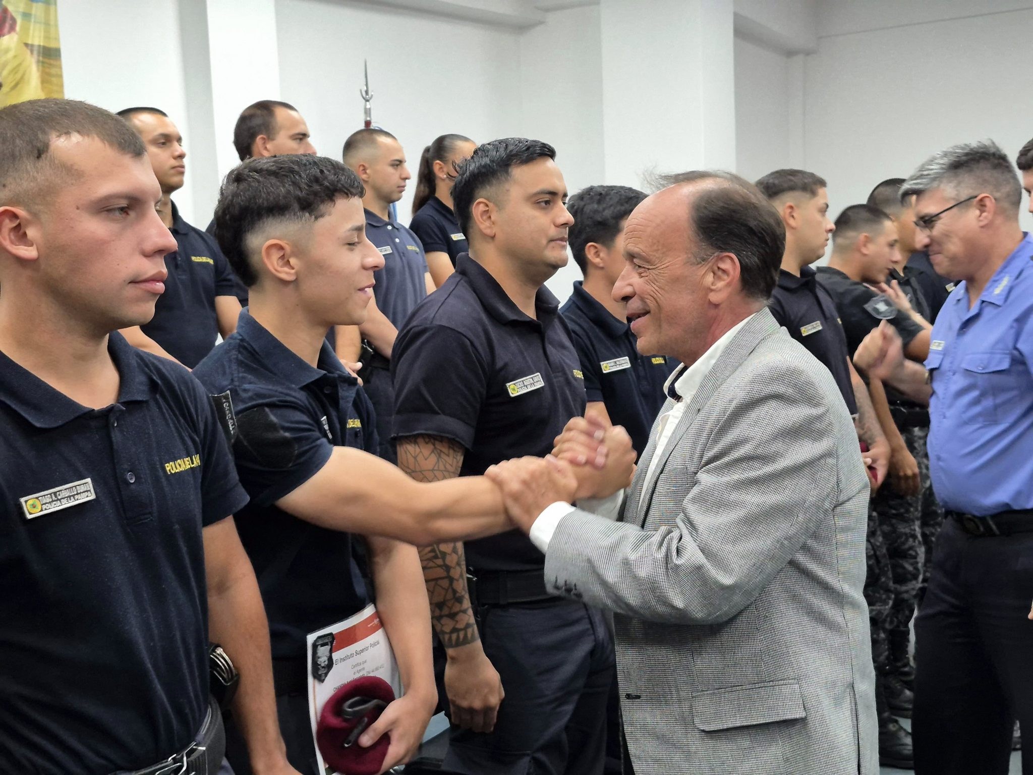 Durante la ceremonia, desarrollada en el Instituto Superior Policial (ISP), estuvieron presentes el ministro de Seguridad y Justicia, Horacio di Nápoli; el jefe de Policía, Claudio Darío Cano; el subsecretario de Formación y de Servicios de Seguridad Privada, Marcos Carnicelli; el subsecretario de Seguridad Ciudadana y Lucha contra el Narcotráfico, Fernando Funes; el rector del ISP, comisario general Héctor Sosa; la directora de la Escuela de Especialidades, comisario María Soledad Seia, y demás autoridades policiales, docentes, egresados e invitados especiales.